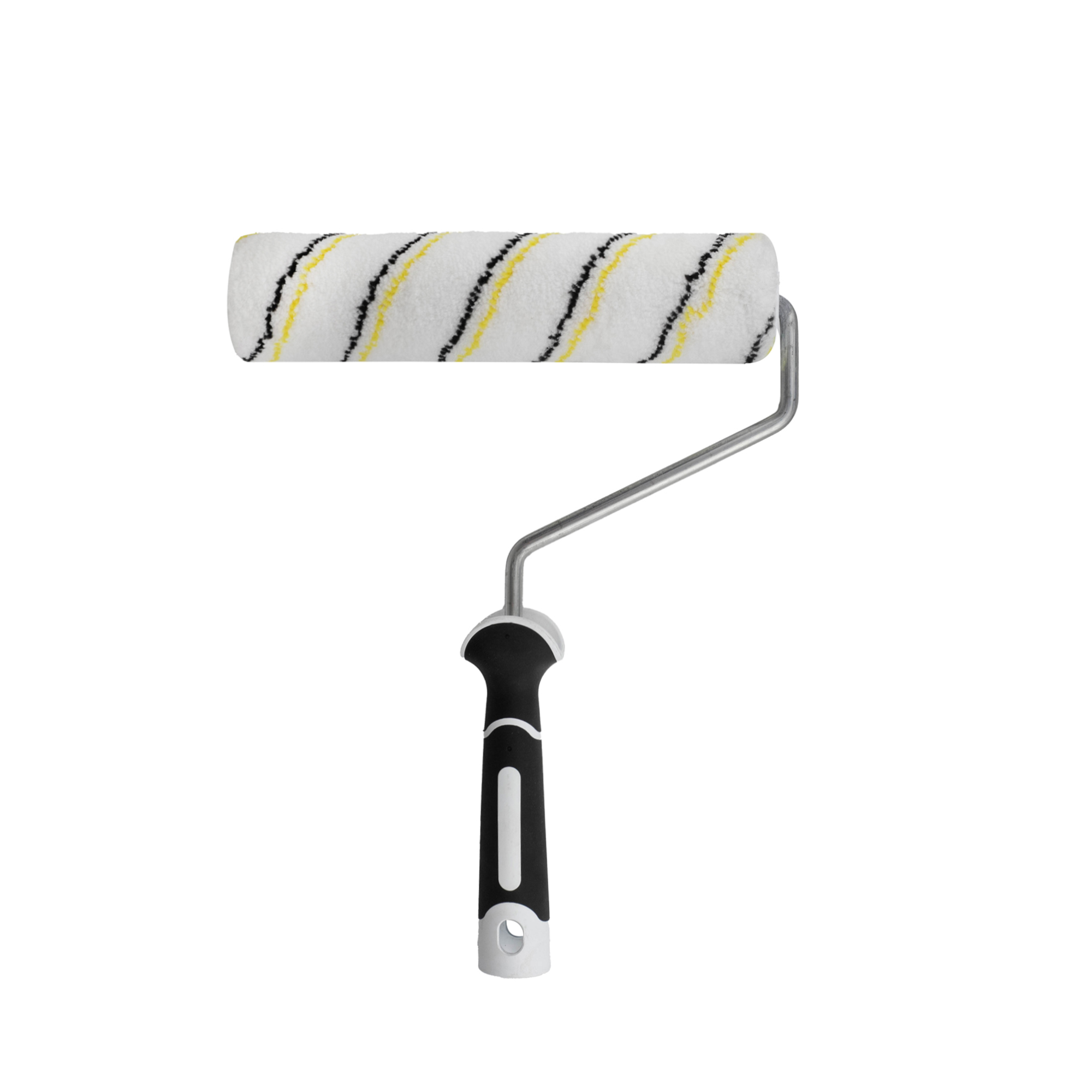 Валик для водных красок полиакрил имеет толстые волокна, прекрасно впитывающие расходный материал во время работы. Излишки краски остаются на валике и не протекают в процессе окрашивания рабочей зоны. Шубка хорошо промазывает толстые края стены и острые углы, благодаря изогнутой рукоятке.