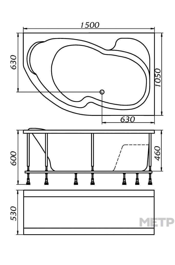 Ванна акриловая ACRYLEA 1500х1050х620 с рамой+ панель правая ассиметричная - отличное решение для вашей ванной комнаты