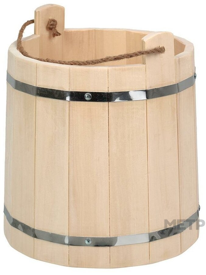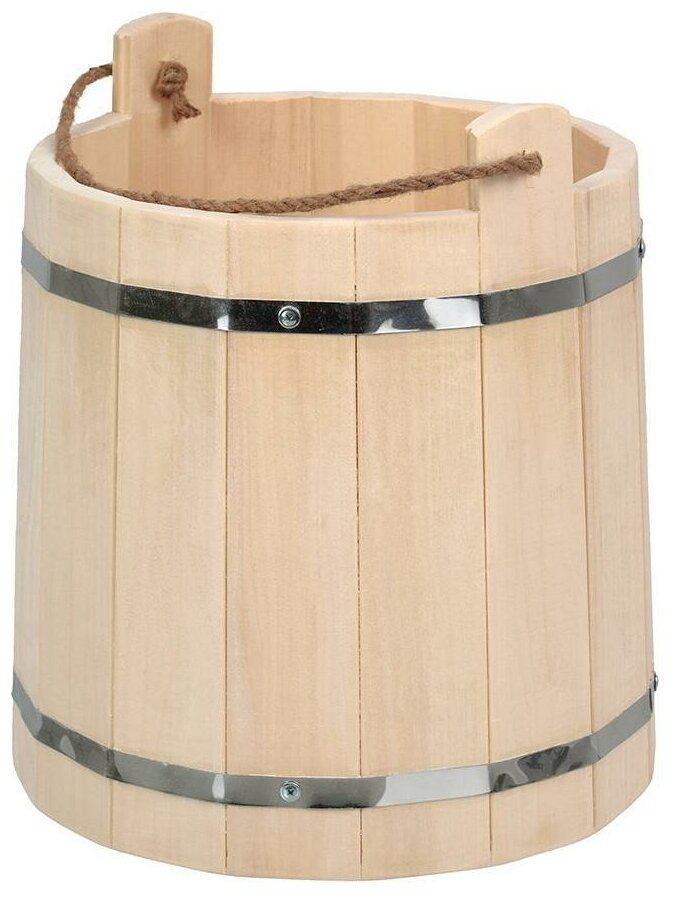 Ведро Банные штучки из липы имеет малый собственный вес, при вместимости 18 литров. Крышка в комплекте не предусмотрена – это именно большое открытое ведро для решения основных задач в бане. Такая емкость может выполнять роль главной, использоваться совместно с изделиями меньших размеров.