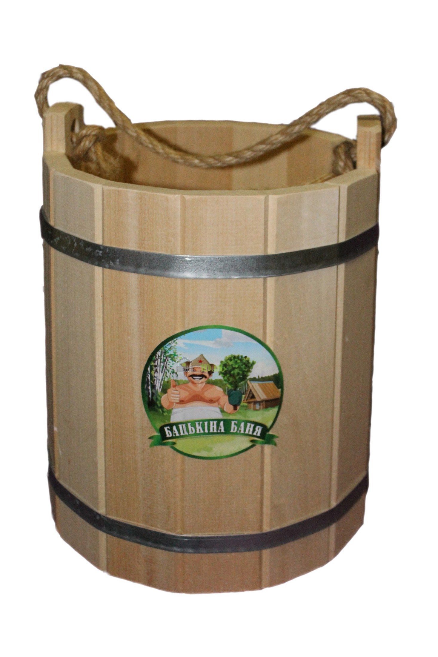 Ведро Бацькина баня (липа) десятилитровое предназначено для регулярного использования в бане или сауне. Изделие оснащено удобной крышкой, прочное и надежное. При производстве этих ведер используется настоящая липа, стенки достаточно толстые. Масса 7 килограммов, линейные размеры высота/ширина (см) 34/29.