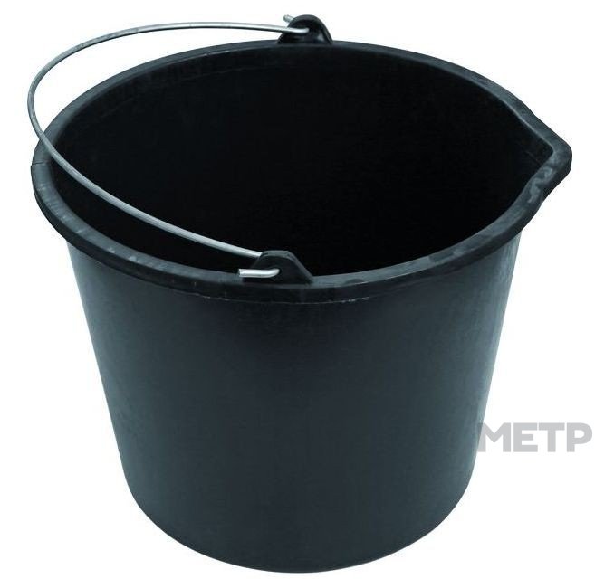 Ведро строительное, вместимостью 16 литров, произведено из черного пластика. Представляет собой удобный рабочий инвентарь для отмеривания частей строительных растворов. Ведро можно одинаково успешно использовать в технических целях, в любой период года, от летней жары до сильных морозов, не опасаясь его деформации.