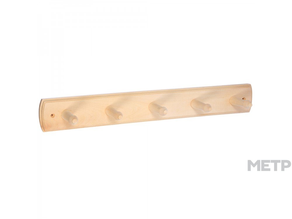 Вешалка для бани 5 рожков Банные штучки сделана из липы. Этот материал благодаря низкой смолистости используется для внутренней обшивки бань и саун. Размер вешалки 50х7 см.
