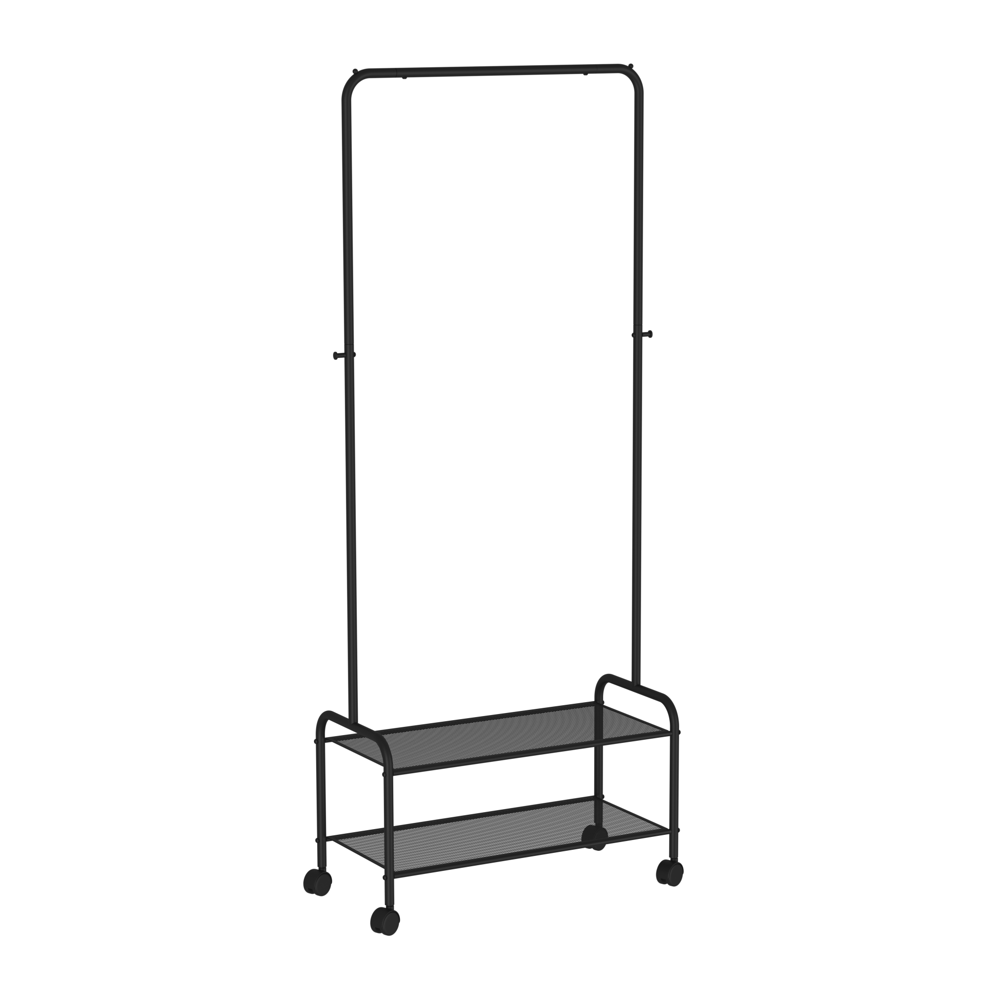 На сетчатых полках с лёгкостью помещается до 4 пар обуви. С помощью колесиков вешалку удобно перемещать по комнате.