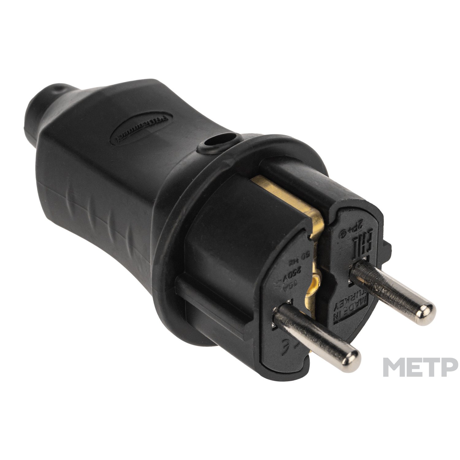 Вилка штепсельная PROconnect 16А 230В 2К+З чёрная прямая IP44 предназначена для использования в сложных эксплуатационных условиях и широко применяется в производстве, строительстве и машиностроении. Она легко монтируется, имеет высокую надежность и долгий срок службы. Ударопрочный разборный корпус выполнен из каучука - полимерный материал, сочетающий внешний вид, упругость и эластичность обычного каучука и эффективность обработки пластмасс.