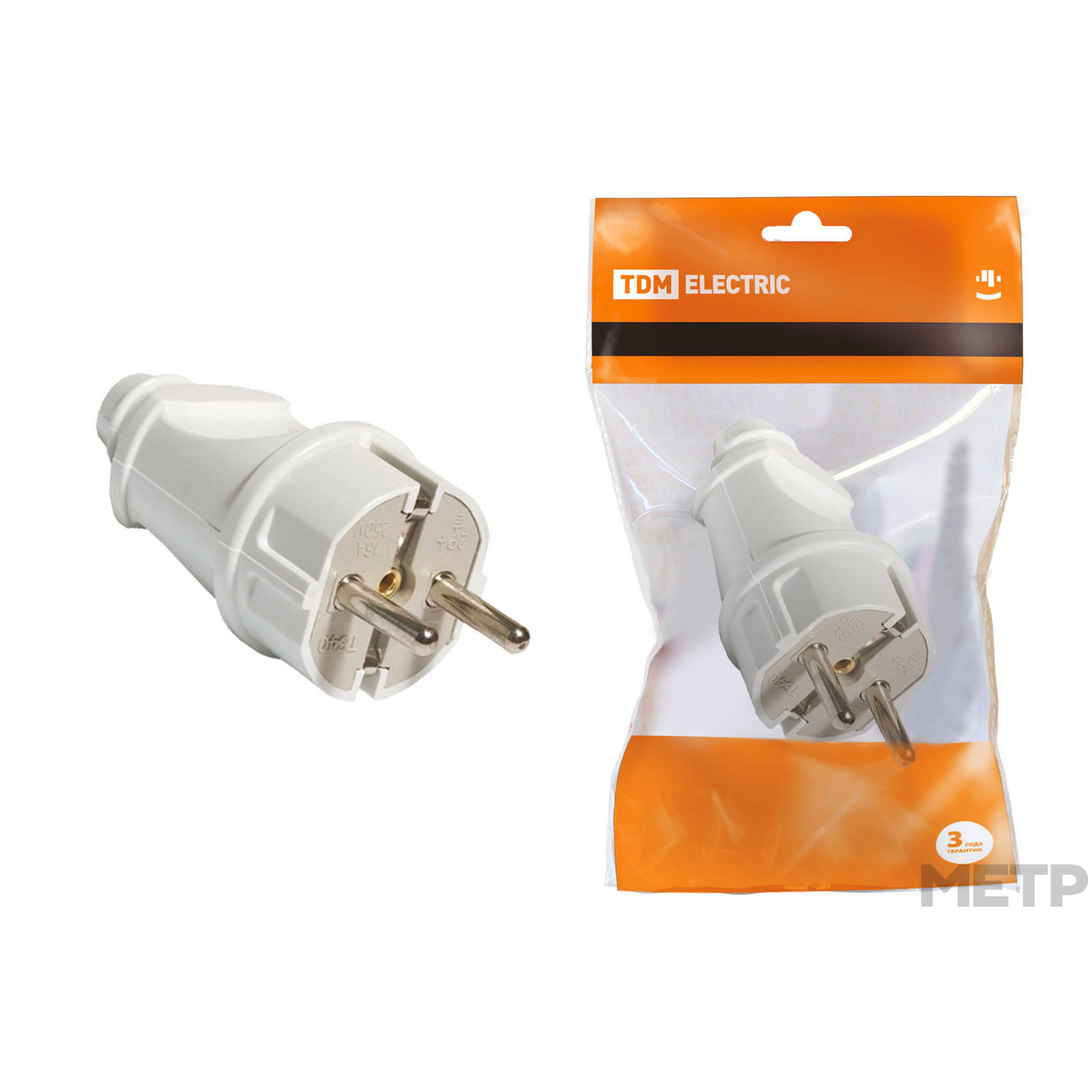 Вилка штепсельная TDM 16А 250В 2К+З белая прямая IP20 с заземлением - электрическая разборная штепсельная вилка, предназначенная для присоединения (разъединения) к электрической сети различных электрических приборов бытового назначения мощностью до 4 кВт. Можно произвести ремонт электрошнура в случае выхода из строя или повреждения неразборной вилки. Корпус выполнен из самозатухающего АБС-пластика, обеспечивающего прочность, термостойкость изделия и устойчивость к воздействию солнечных лучей. Контактная группа изготовлена из латуни. Применение: жилые помещения (дома, квартиры и т.д.), объекты коммерческой недвижимости (офисы, торговые центры и т.д.), инфраструктурные объекты (больницы, школы и т.д.).