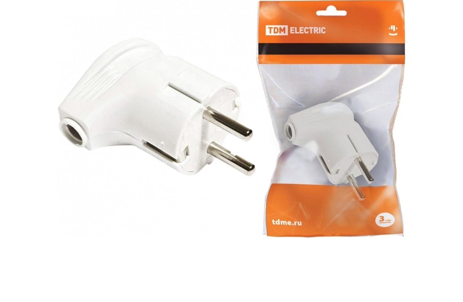 Вилка штепсельная TDM 16А 250В 2К+З белая угловая IP20 с заземлением - электрическая разборная штепсельная вилка, предназначенная для присоединения (разъединения) к электрической сети различных электрических приборов бытового назначения мощностью до 4 кВт. Можно произвести ремонт электрошнура в случае выхода из строя или повреждения неразборной вилки. Корпус выполнен из самозатухающего АБС-пластика, обеспечивающего прочность, термостойкость изделия и устойчивость к воздействию солнечных лучей. Контактная группа изготовлена из латуни. Применение: жилые помещения (дома, квартиры и т.д.), объекты коммерческой недвижимости (офисы, торговые центры и т.д.), инфраструктурные объекты (больницы, школы и т.д.).