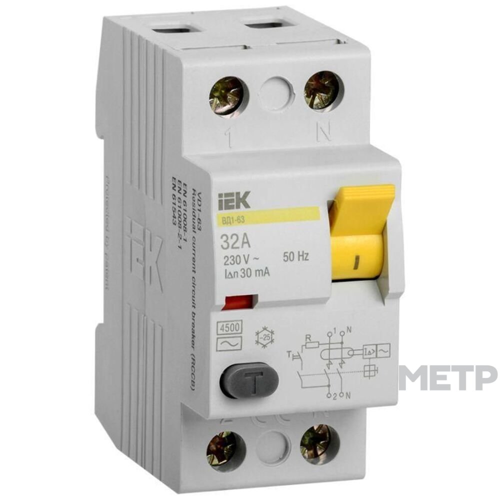 Выключатель дифференциальный (УЗО) ВД1-63 IEK 2P 32A 30мА без встроенной защиты от сверхтоков реагирует не только на синусоидальные переменные дифференциальные токи, но и на пульсирующие постоянные дифференциальные токи. Источником пульсирующего тока являются, например, стиральные машины с регуляторами скорости, регулируемые источники света, телевизоры, видеомагнитофоны, персональные компьютеры и др. Дифференциальный выключатель ВД 1-63 тип А соответствует требованиям ГОСТ 50326 и ГОСТ 50807 как дифференциальный выключатель, "функционально не зависящий от источника питания". Дифференциальный выключатель ВД 1-63 тип А предназначен для защиты человека от поражения электрическим током при случайном непреднамеренном прикосновении к токоведущим частям электроустановок в сетях переменного тока напряжением 230/400 В и частотой 50 Гц.