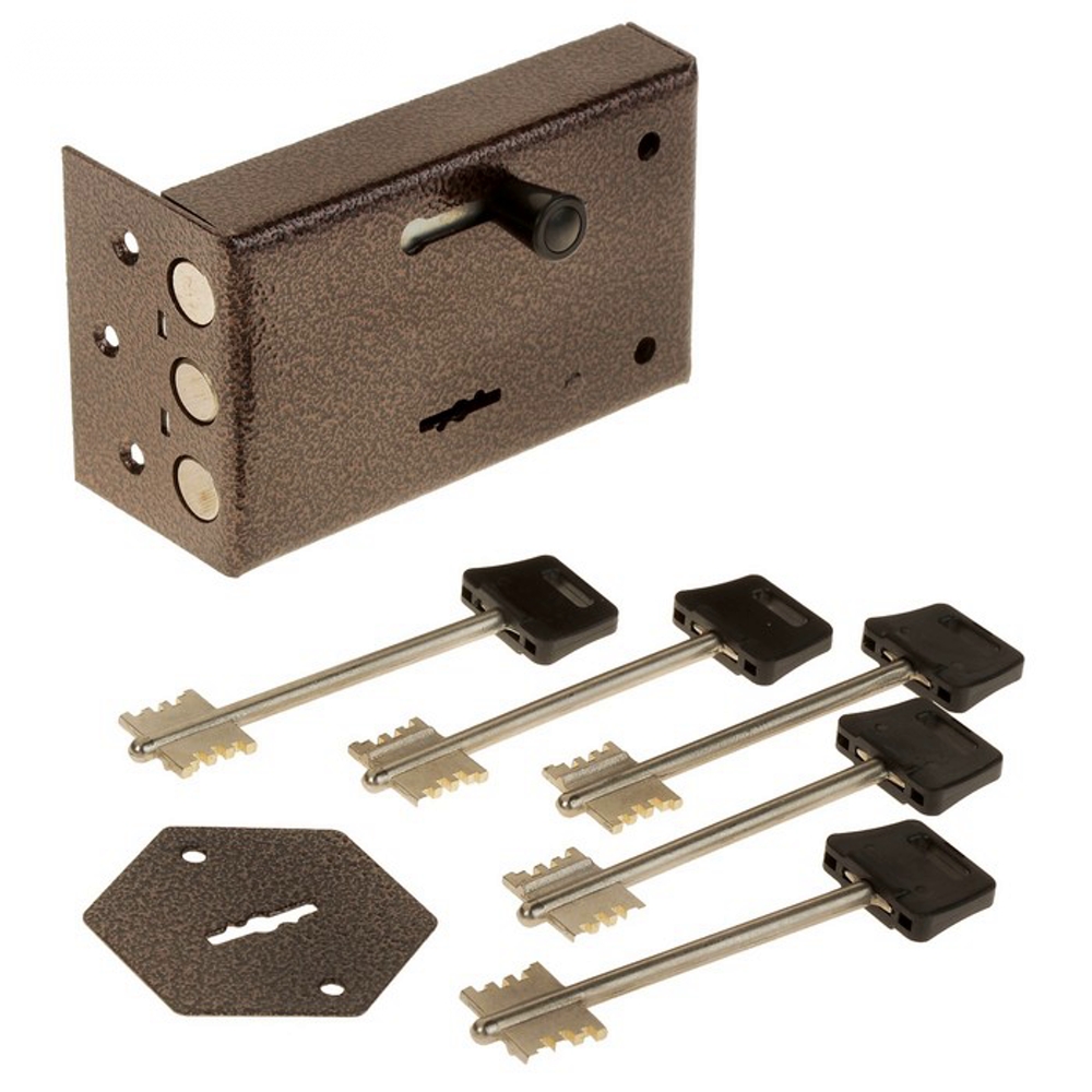 Замок накладной Сенат 3НС3-2-5 крепят на дверях из дерева или металла. Замок универсален и можно устанавливать как с левым открыванием дверей, так и с правым. Устройство наивысшего класса взломостойкости с повышенной секретностью, имеет 2 стальных ригеля и задвижку ("ночной сторож").