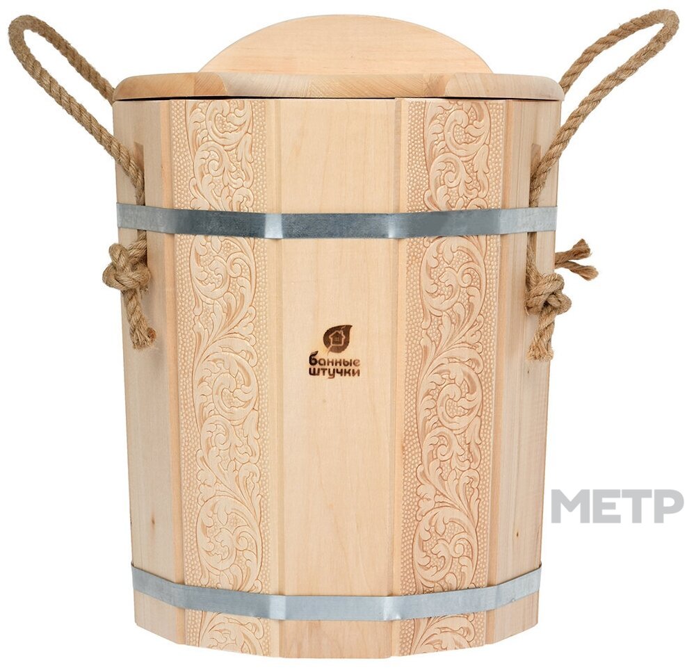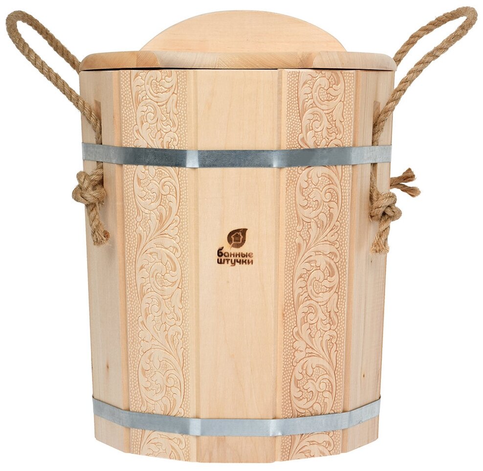 Запарник Банные штучки из липы на 14 литров – это продвинутая модель с удобной крышкой. Даже при полном заполнении емкости горячей водой вы не рискуете обжечься. Использование на производстве таких моделей качественного дерева гарантирует длительный срок службы запарника.