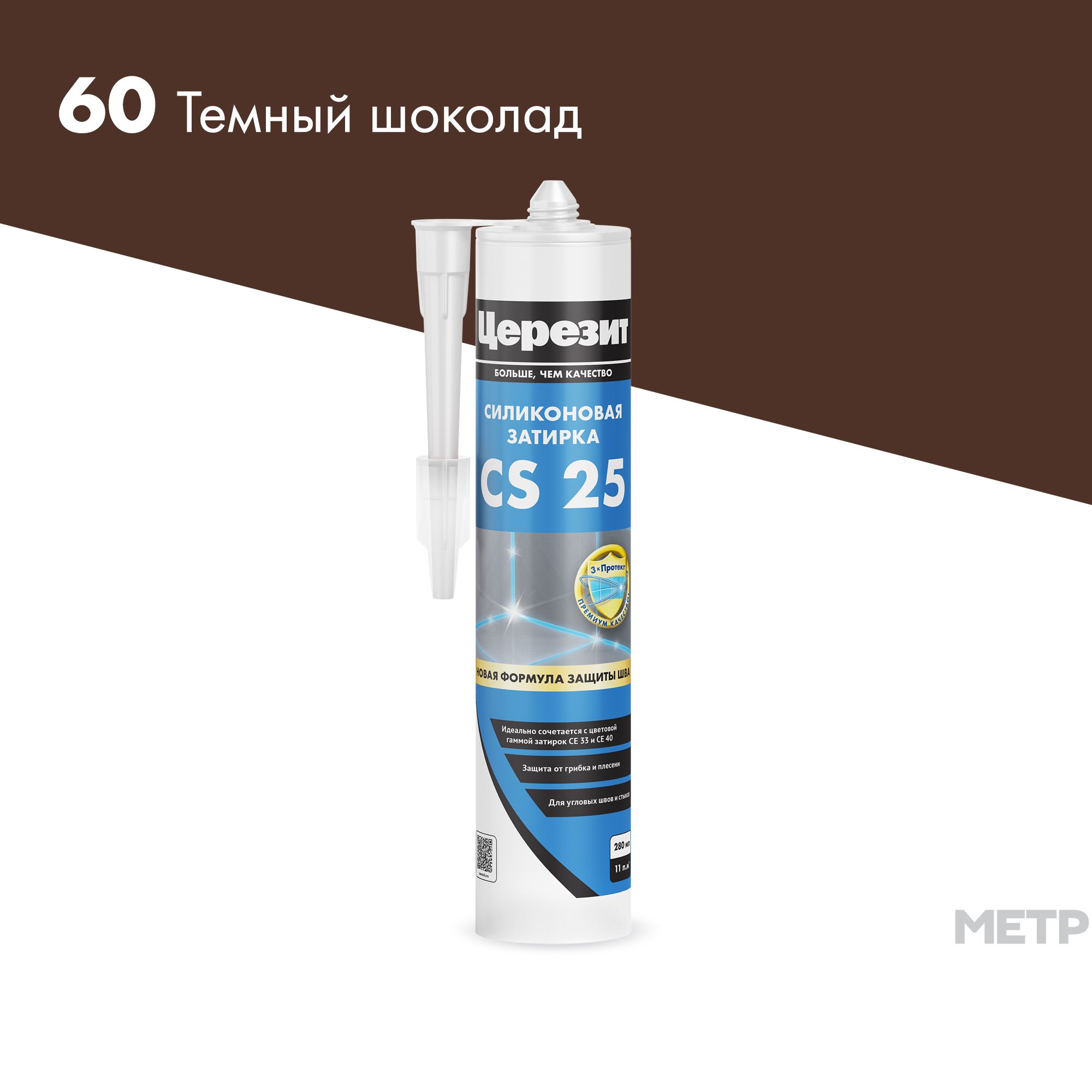 Силиконовая затирка-герметик Церезит CS 25, цвет Тёмный шоколад, 280 мл. Цветная силиконовая затирка-герметик с усиленным противогрибковым эффектом для герметизации угловых, деформационных швов и стыков, примыкающих к ваннам, раковинам и другому санитарно-техническому оборудованию. Применяется для швов всех видов керамической облицовки шириной от 5 до 30 мм в помещениях с повышенной влажностью и снаружи зданий. Обладает высокой адгезией к эмалированным поверхностям, стеклу, фарфору и фаянсу. Обеспечивает длительную стойкость к грибку и плесени. Благодаря высокой стойкости к УФ-излучению и озону может применяться при наружных работах. Содержит фунгициды и при отверждении выделяет уксусную кислоту, поэтому не пригодна для контакта с пищевыми продуктами, питьевой водой, мрамором, известняком, зеркалами, корродирующими металлами (свинцом, медью, цинком, железом) и герметизации аквариумов. Не имеет адгезии к резине, битуму, гудрону, тефлону, полиэтилену и материалам, выделяющим масла, пластификаторы или растворители.