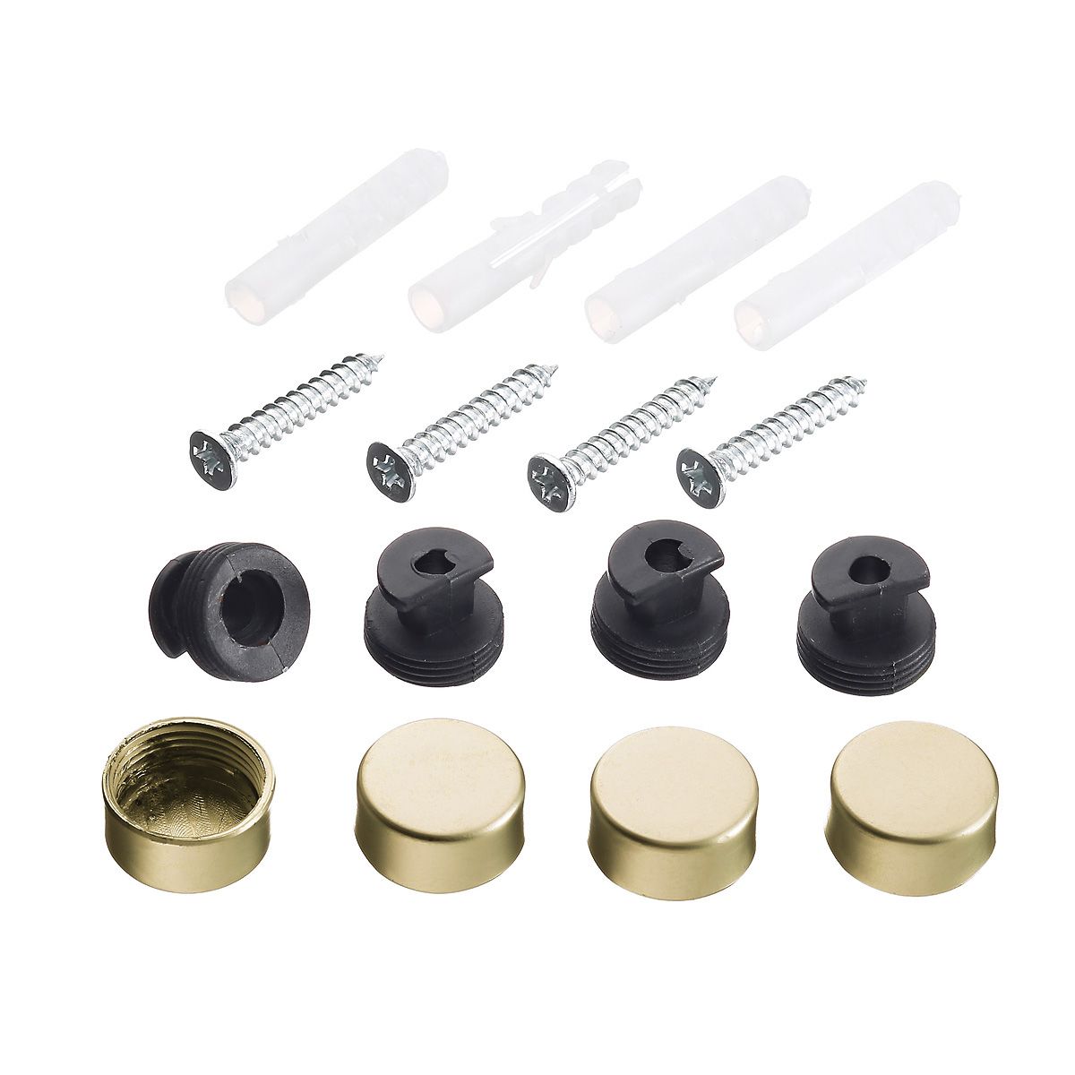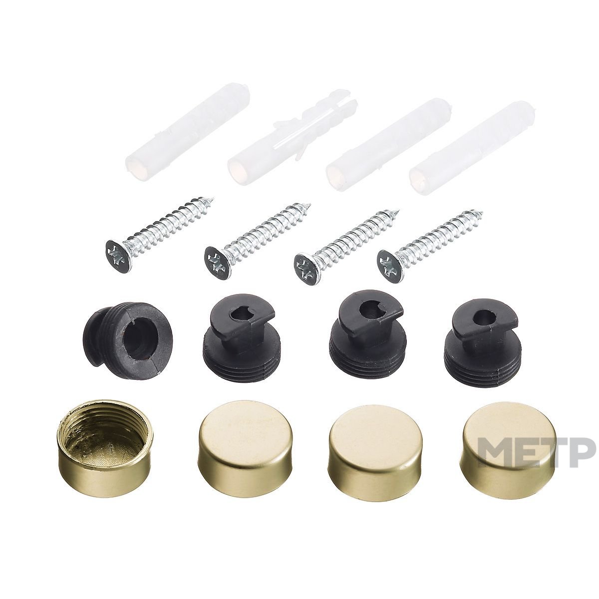 Комплект держателей для зеркала золото отлично подойдут под ваш интерьер. Комплект состоит из: зеркалодержатель-4шт, дюбель - 4шт., саморез - 4шт.