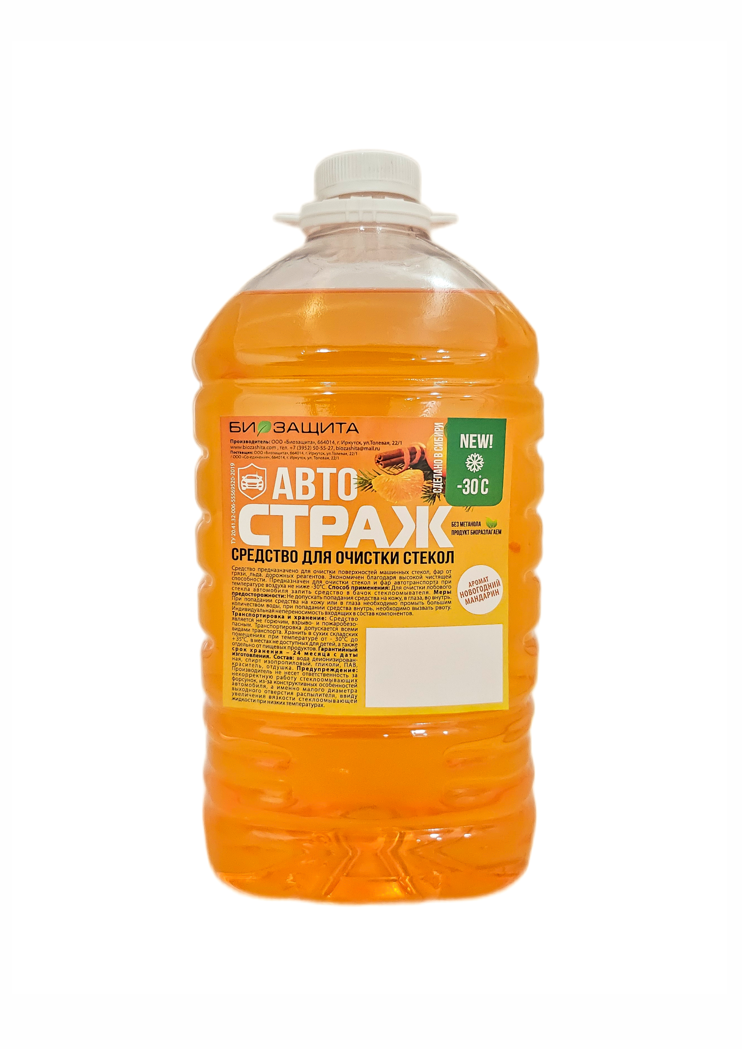 Жидкость стеклоомывающая зимняя -30 3л Мандарин является низкозамерзающей до -30С. предназначена для стёкол и предотвращения загрязнения и обледенения поверхности автомобиля. Уникальная химическая формула незамерзайки позволяет эффективно удалять грязь, соль и нефтяную пленку, не оставляя разводов. Безвредна для лакокрасочных покрытий и резинок стёкол. Не оставляет биологических загрязнений, бликов, масляных пятен и разводов на стекле, повышая уровень безопасности управления автомобилем.Имеет аромат мандарина