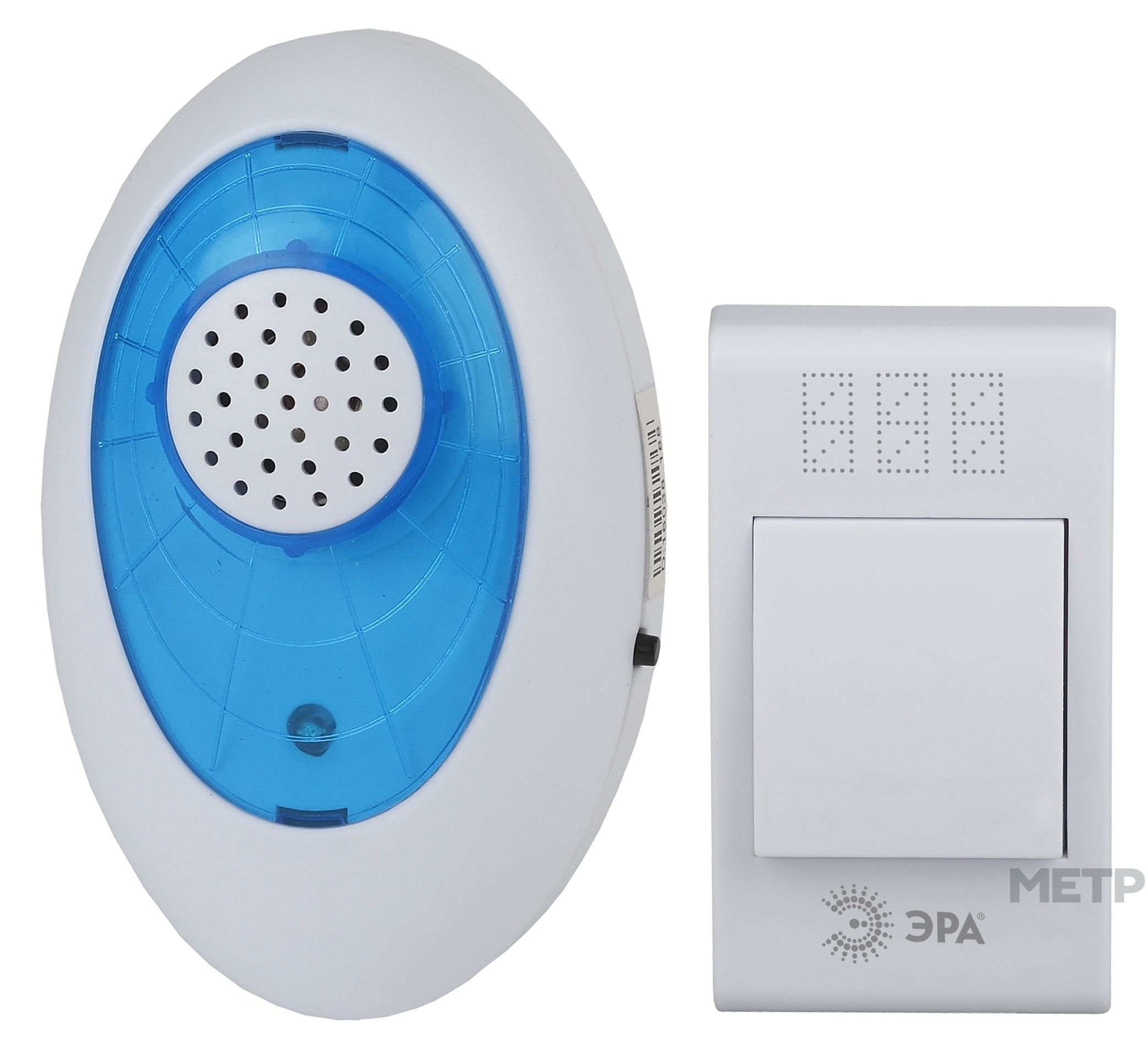 Звонок дверной ЭРА A01 беспроводной бело-синий – беспроводной дверной звонок с 32 полифоническими мелодиями серии Basic. Ловит сигнал в радиусе до 100 метров. Работает от батареек. Аккуратный, лаконичный дизайн. Над кнопкой предусмотрено пространство для указания номера квартиры. Звук звонка Вам не надоест со временем, так как мелодии легко менять по настроению, а их выбор довольно большой.